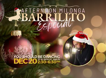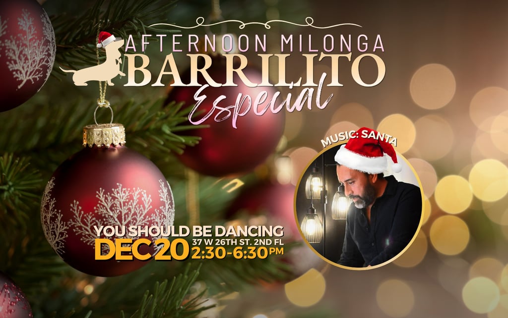 Inspired by a dog and named after another dog, Barrilito started in 2018 as a weekly Tango Práctica in midtown Manhattan. In 2021 it expanded to offer a monthly Afternoon Milonga for those of us who like Tango but like early bed time even more.