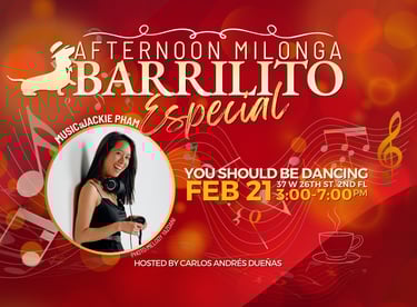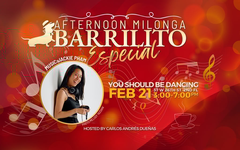Inspired by a dog and named after another dog, Barrilito started in 2018 as a weekly Tango Práctica in midtown Manhattan. In 2021 it expanded to offer a monthly Afternoon Milonga for those of us who like Tango but like early bed time even more.