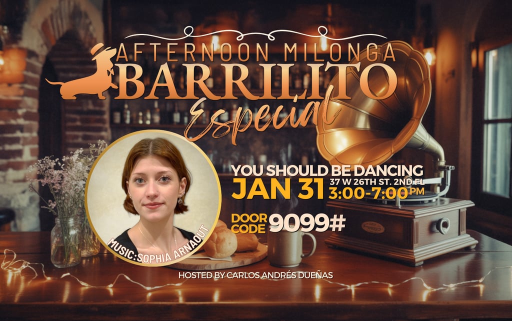 Inspired by a dog and named after another dog, Barrilito started in 2018 as a weekly Tango Práctica in midtown Manhattan. In 2021 it expanded to offer a monthly Afternoon Milonga for those of us who like Tango but like early bed time even more.
